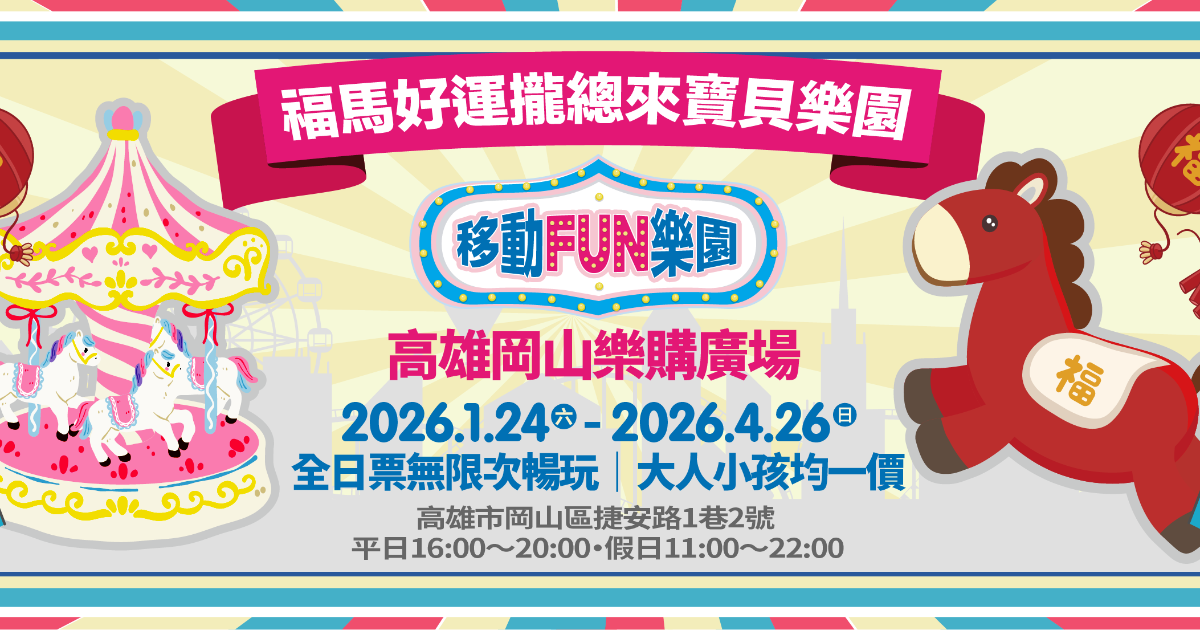 2026/1/24~2026/4/26🎡【移動FUN樂園_福馬好運攏總來寶貝樂園 】🎡在高雄岡山樂購廣場